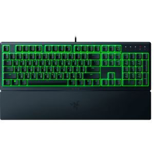 The Razer Ornata V3 X is a low-profile membrane keyboard designed for smooth and quiet typing. Featuring durable UV-coated keycaps, vibrant RGB backlighting, and an ergonomic wrist rest, it ensures long-lasting comfort and style. The 104-key layout supports EN/UK configurations, while the spill-resistant design adds extra durability.