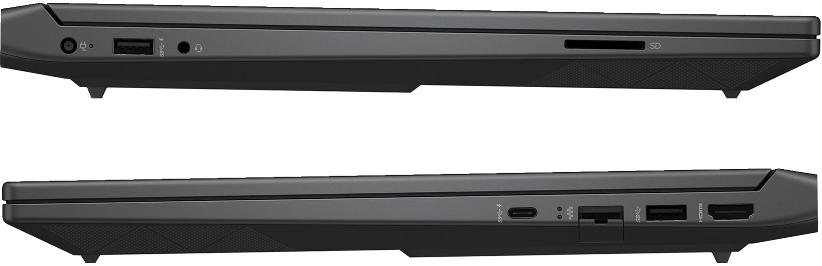Connectors and input-output ports:1 HDMI 2.1, 1 RJ-45, 1 AC smart pin, 1 USB Type-A 5Gbps signaling rate (HP Sleep and Charge), 1 USB Type-A 5Gbps signaling rate, 1 headphone/microphone combo, 1 USB Type-C® 5Gbps signaling rate (DisplayPort™ 1.4a, HP Sleep and Charge)