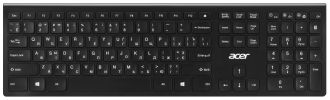 Клавіатура ACER OKR020 має класичний дизайн, чорний колір добре підходить для офісу та для дому. Клавіатура має конструктивне рішення зі стандартним розташуванням усіх клавіш, що сприяє їхньому швидкому запам'ятовуванню та зручній роботі. Відстань між клавішами невелика, що дає змогу плавно набирати текст, не боячись натиснути 2 клавіші відразу. Кнопки невисокі та мають хороший хід. Клавіатура має бездротове підключення і зв'язується з комп'ютером через радіоканал. Невеликий приймач підключається через інтерфейс USB. Клавіатура ACER OKR020 обладнана 4 спеціальними мультимедійними клавішами.