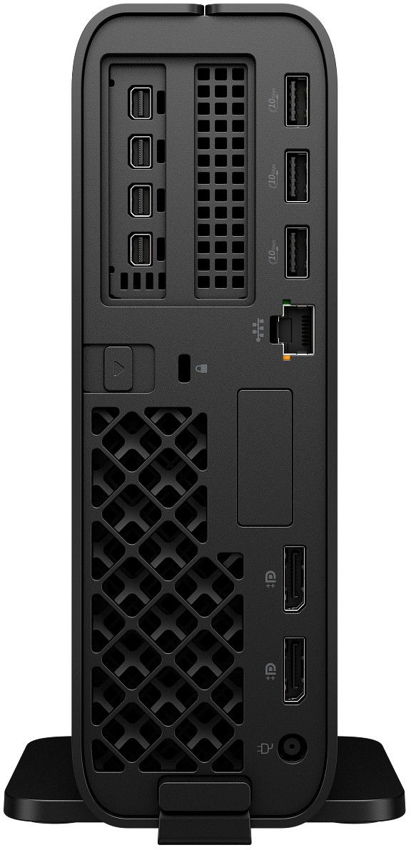 - Порти спереду/ззаду: 4 × USB-A 3.2 Gen2 (1 з зарядкою), 2 × USB-C 3.2 Gen2, 2 × DP 1.4, RJ-45, комбо-аудіо