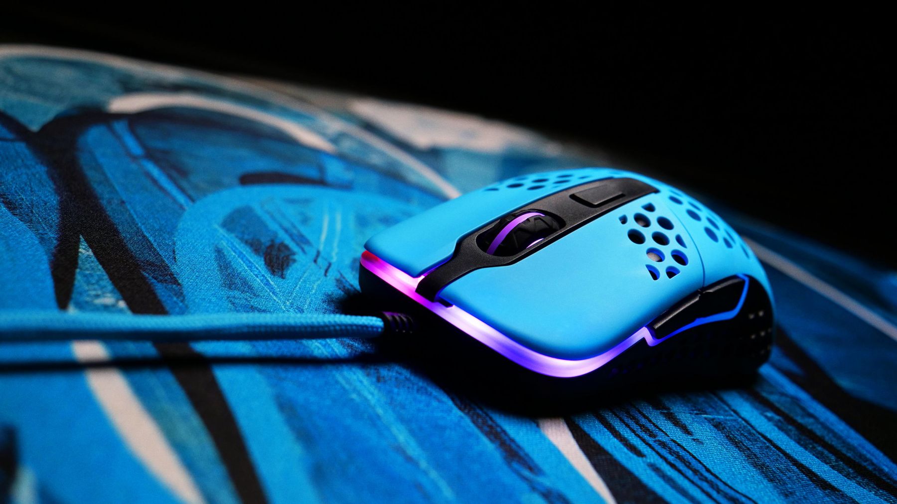 Тефлоновые ножки M42 с закругленными краями для более плавного скольжения, а его матовое УФ-покрытие в сочетании со структурой отверстий обеспечивает более устойчивый захват. Отверстия, улучшающие поток воздуха под ладонью, также помогают вам чувствовать себя комфортно.