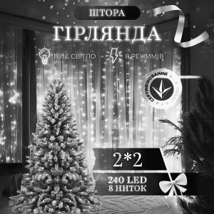 Гірлянда штора 2х2 м 240 LED світлодіодна мідний провід 8 ниток Білий ZWM2240LEDW