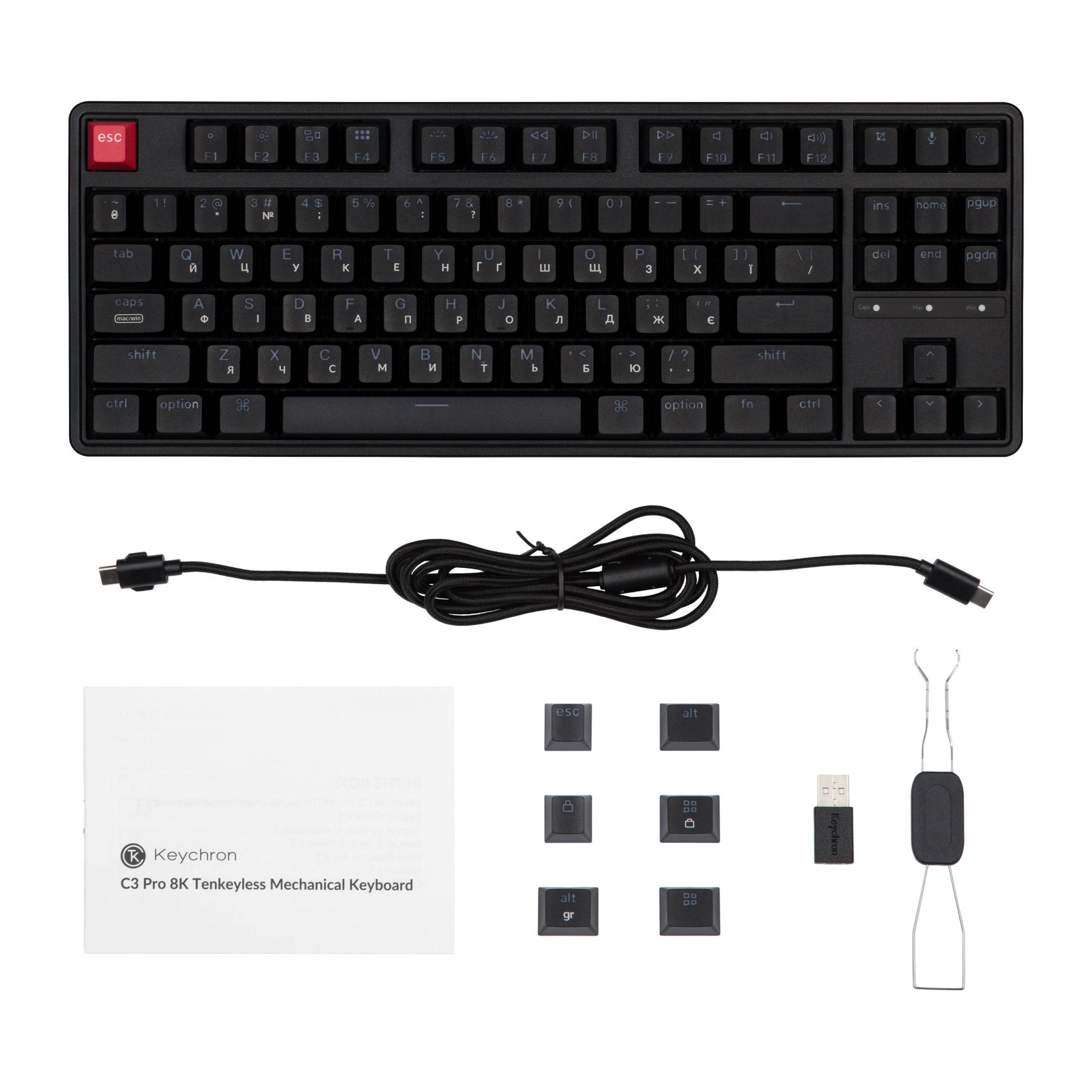 Клавіатура механічна Keychron C3 Pro V2 87Key, K pro Brown, USB-A, QMK, Hot-swap,8K, EN/UKR, RGB, чорний