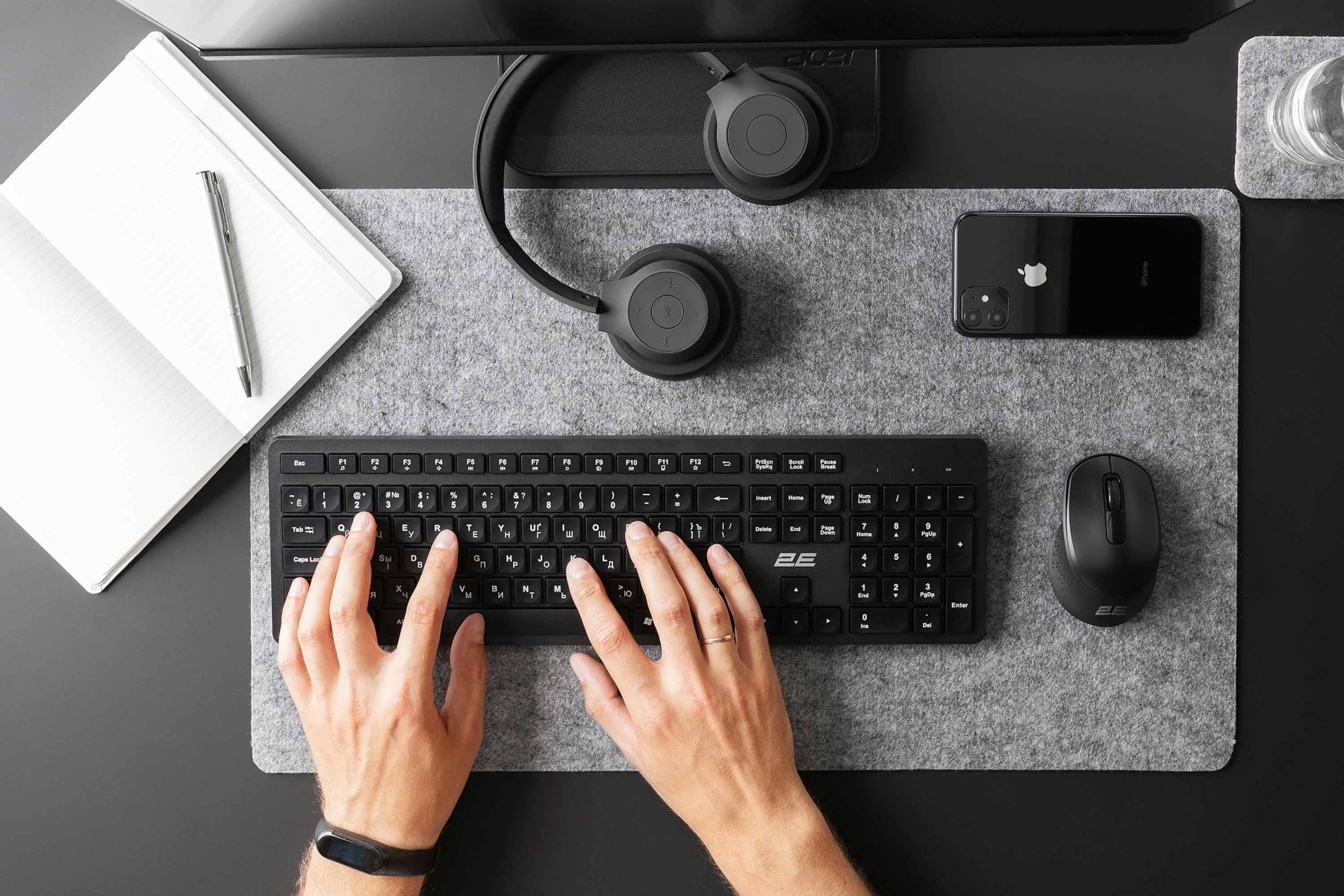 Комплект клавіатура та миша 2E MK420 WL, EN/UK/RU, чорний