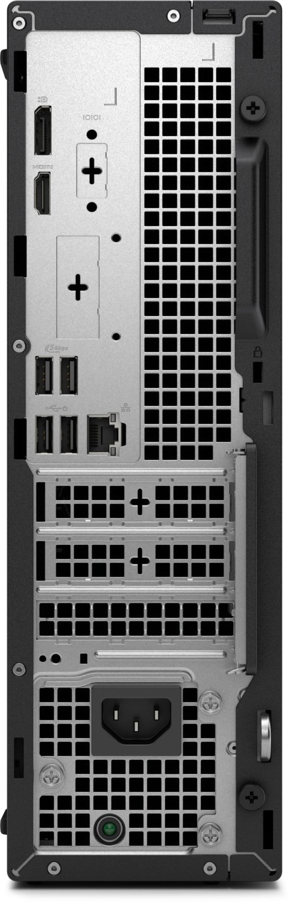 Встановіть його вертикально на столі або горизонтально для підтримки монітора та економії цінного місця на столі. Зберігайте його в ідеальному стані за допомогою додаткового пилового фільтра для захисту компонентів і зменшення кількості кабелів за допомогою додаткової задньої кришки Dell Pro Slim Cable Cover.