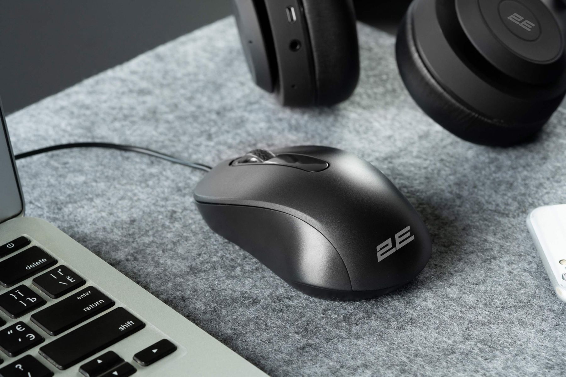 Дротова мишка виконана в класичному чорному дизайні з прогумованим коліщатком, для більш зручного скролінгу. Зручна симетрична форма для роботи як лівою, так і правою рукою. Простий але функціональний девайс для виконання повсякденних завдать керуванням ПК. 1,8м дроту вистачить для підключення як до ноутбку, так і до ПК, схованого подалі під столом.