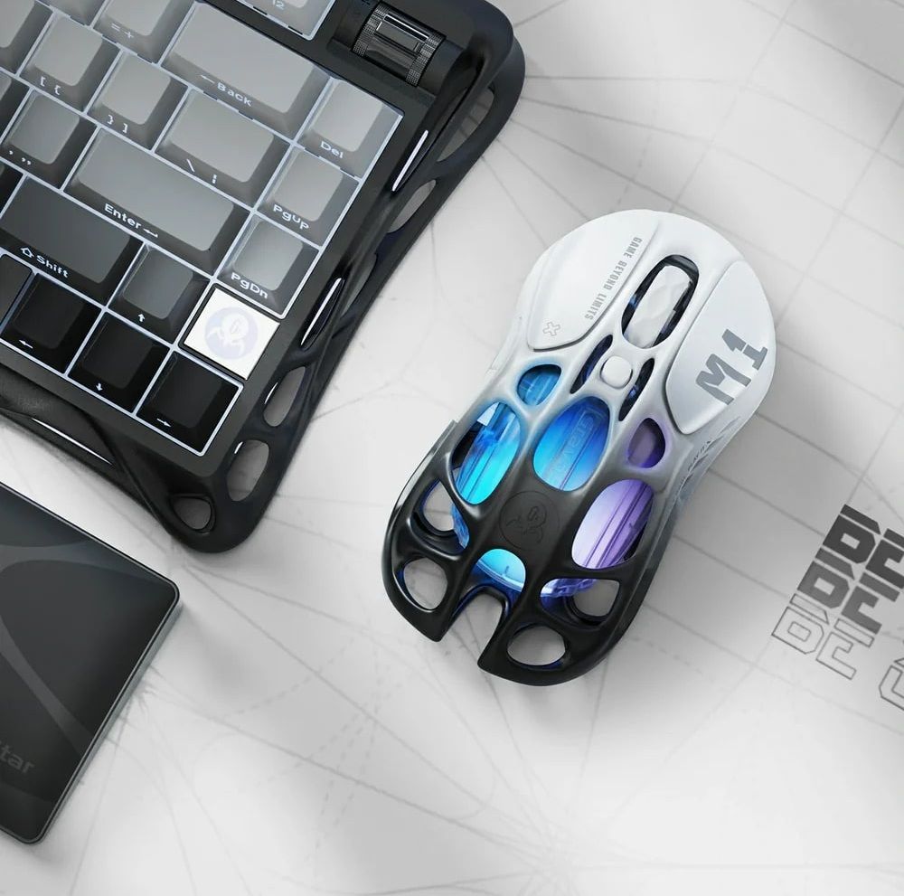 GravaStar Mercury M1 Pro Gradient Black створена для максимальної точності, легкості та комфорту. Магнієвий корпус зі скелетною структурою забезпечує стабільність при мінімальній вазі, а амбідекстральна форма підходить для будь-якого стилю хвату. Оптичний сенсор PAW3395 реагує на найменші рухи, а RGB-підсвічування GLOWSYNC додає індивідуального стилю. Трирежимне підключення (USB, Bluetooth, 2.4 ГГц) і потужна батарея гарантують тривалу безперебійну роботу.