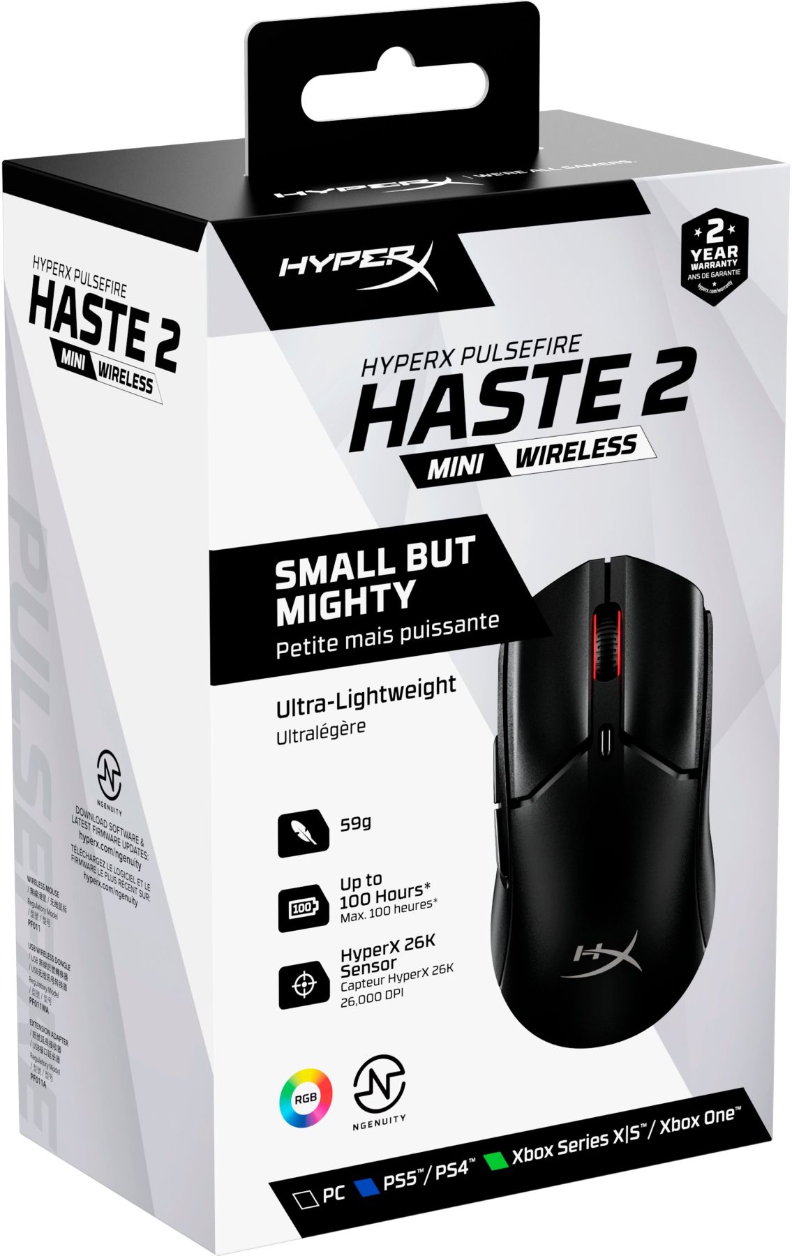 Миша HyperX Pulsefire Haste 2 mini, RGB, USB-A/WL/BT, чорний
