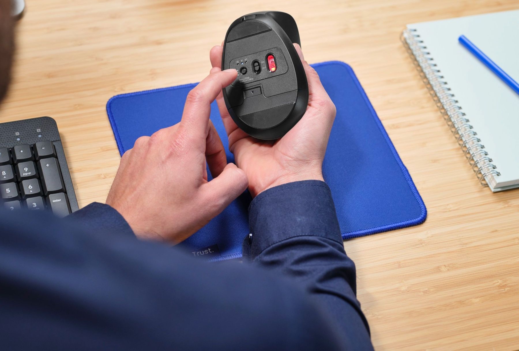 Ваш робочий день має бути максимально простим, тому Bayo+ оснащена двома легкодоступними бічними кнопками для великого пальця, які дають змогу легко переміщатися вперед і назад.