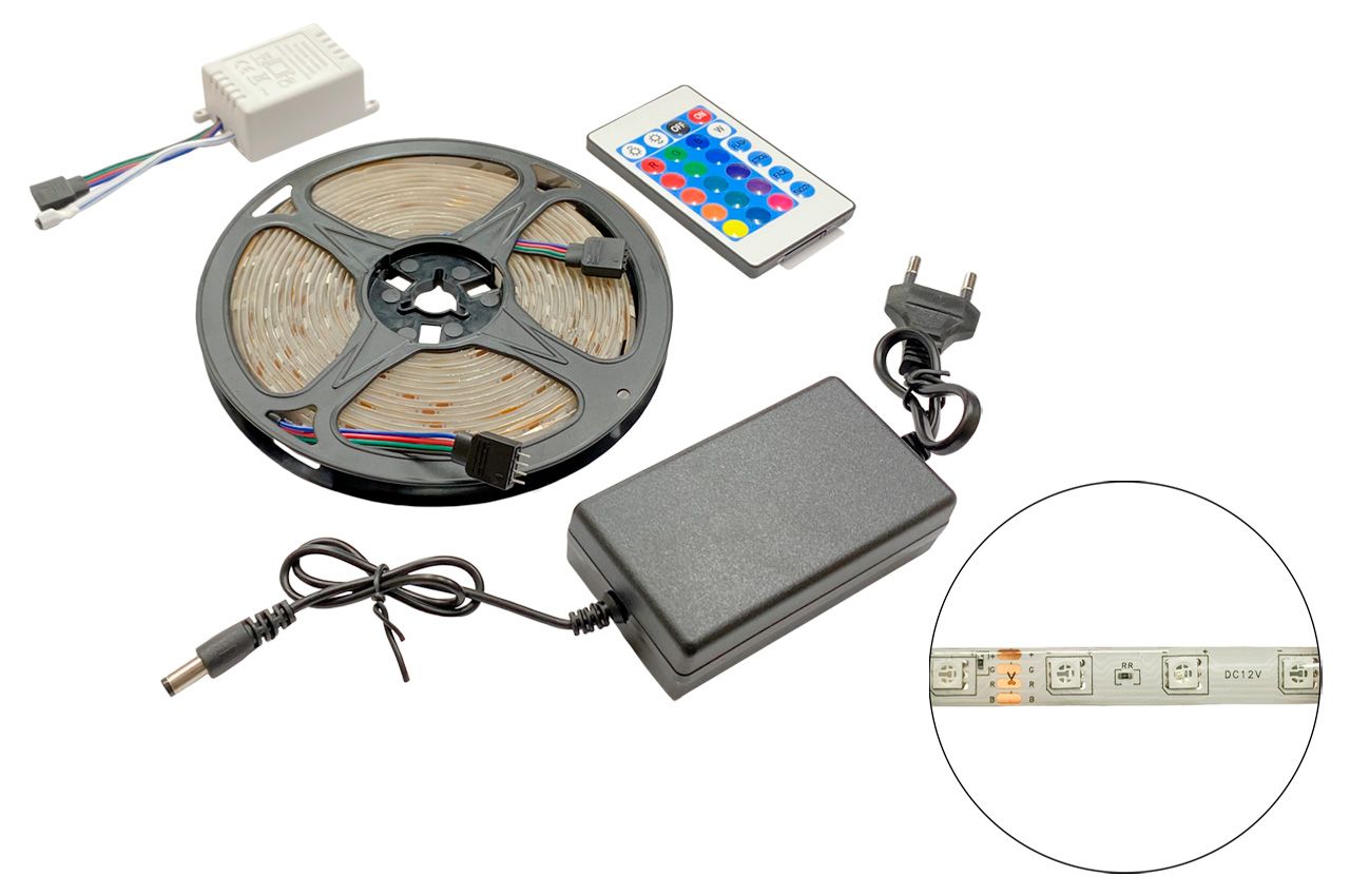 Світлодіодна LED стрічка з пультом RGB 5050 (з блоком живлення) (NF-00005463)